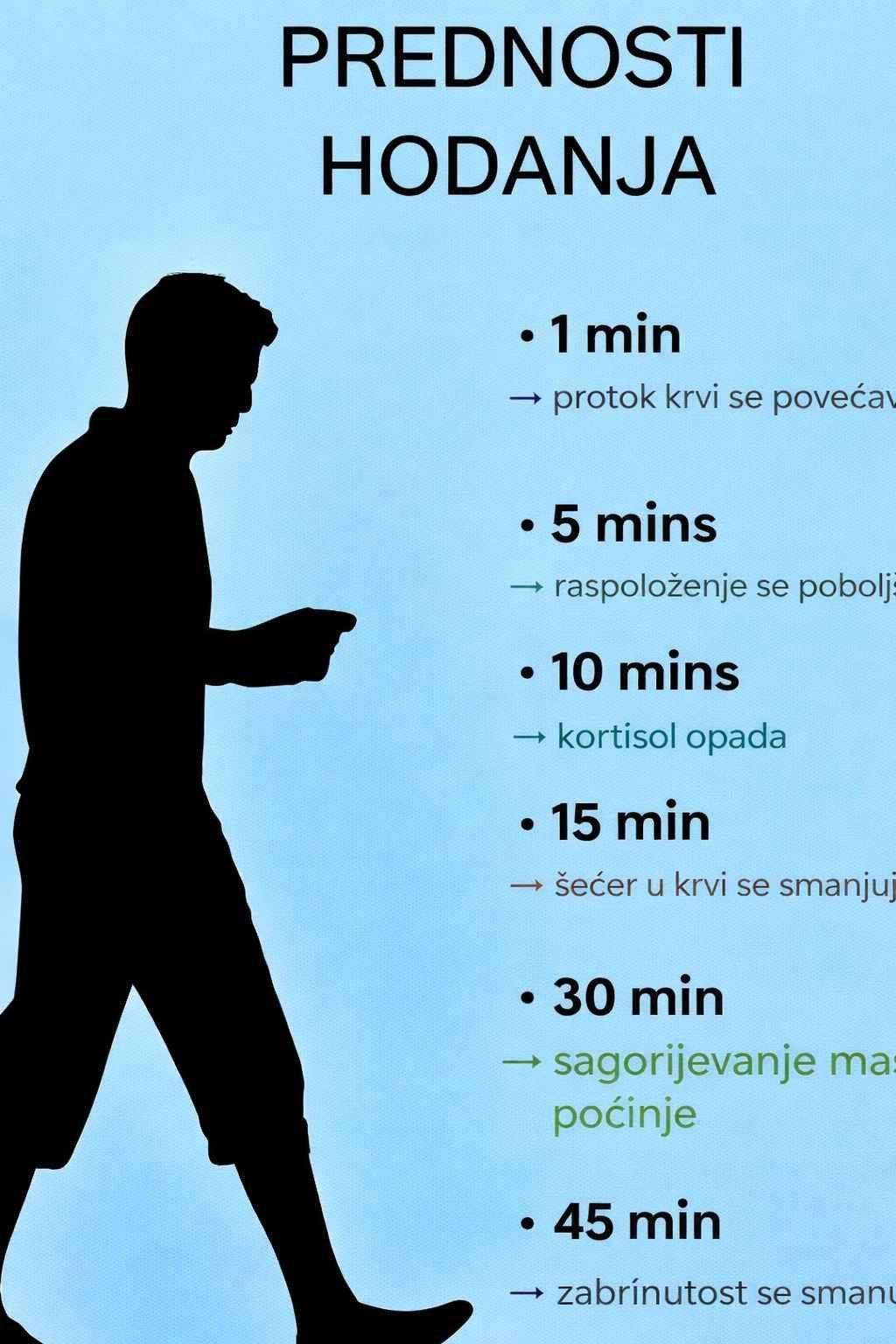 Iako djeluje obično, hodanje je zapravo moćna navika koja već nakon nekoliko minuta pokreće niz korisnih procesa u organizmu. Evo kako se vaše zdravlje mijenja iz minute u minuti:
