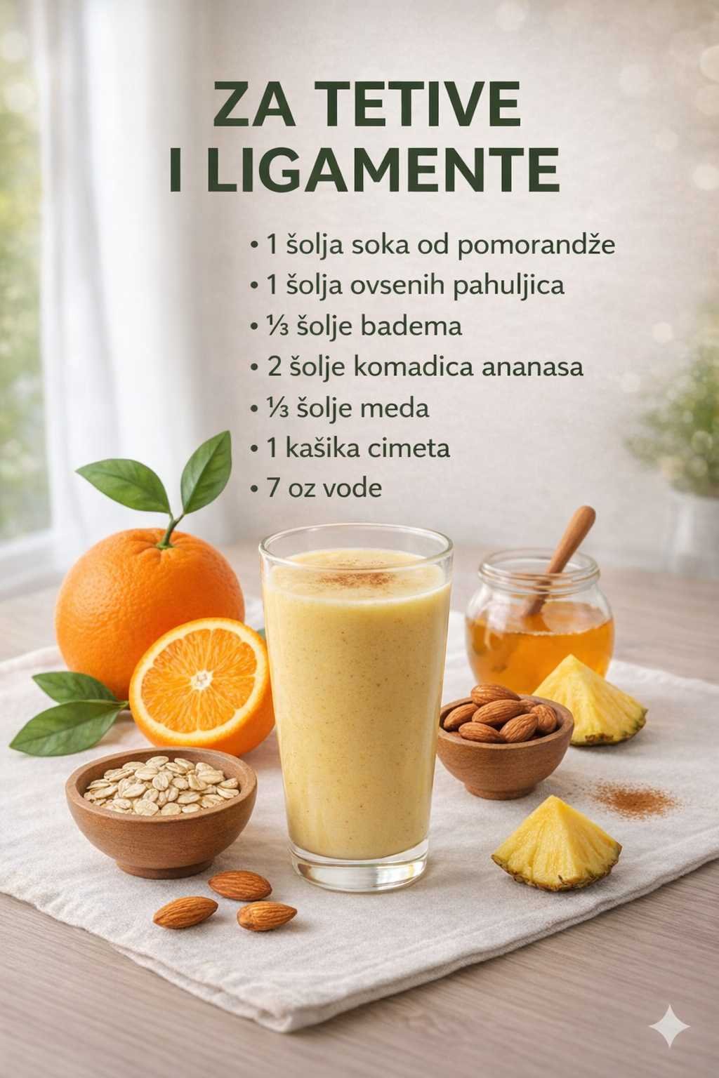 Prednosti: Ananas osigurava vitamin C i prirodne enzime, mrkva nudi antioksidanse, a limun pomaže u revitalizaciji kože. Ovaj sok može pomoći vašoj koži da bude hidriranija, elastičnija i zdravijeg izgleda.