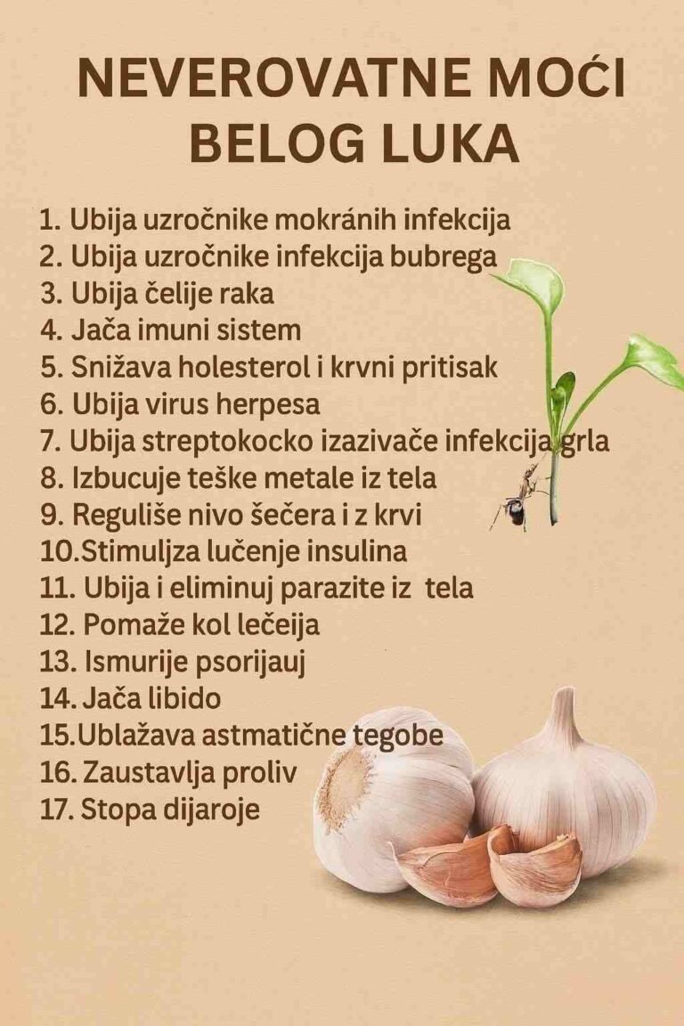 Uncategorized NEVER0VATNE M0ĆI BEL0G LUKA MilanMarch 14, 20260 Beli luk je jedna od najstarijih i najmoćnijih ljekovitih biljaka na svijetu. Korišten je hiljadama godina u tradicionalnoj medicini zbog…
