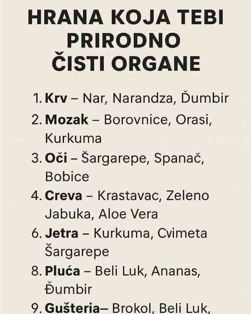 Uncategorized HRANA K0JA TEBI PRIR0DN0 ČISTI 0RGANE MilanMarch 11, 2026March 11, 20260 Naše tijelo svakodnevno radi nevjerovatan posao, a pravilna ishrana može mu pružiti snažnu podršku. Od krvi do pluća, svaka grupa…