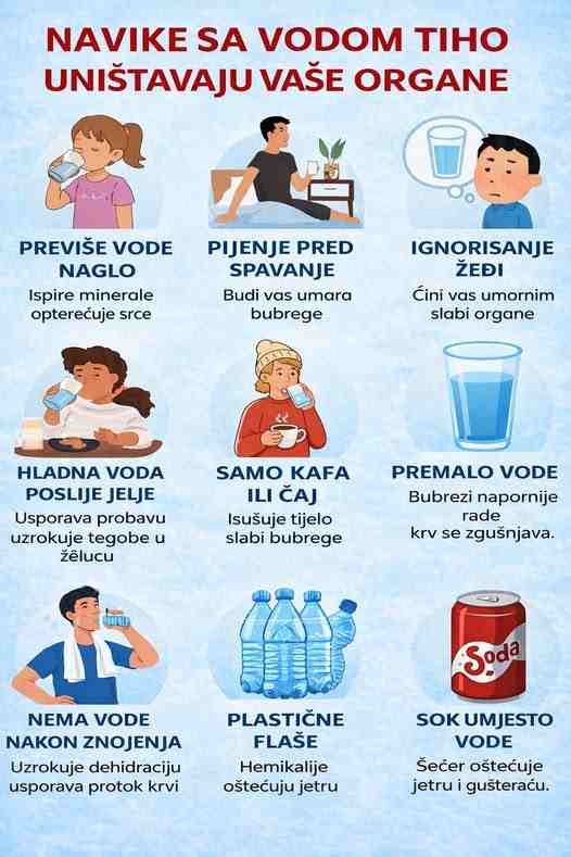 Nedovoljno pijenja vode Dehidracija prisiljava vaše bubrege da filtriraju gušću krv, povećavajući rizik od bubrežnih kamenaca, umora i slabe cirkulacije….