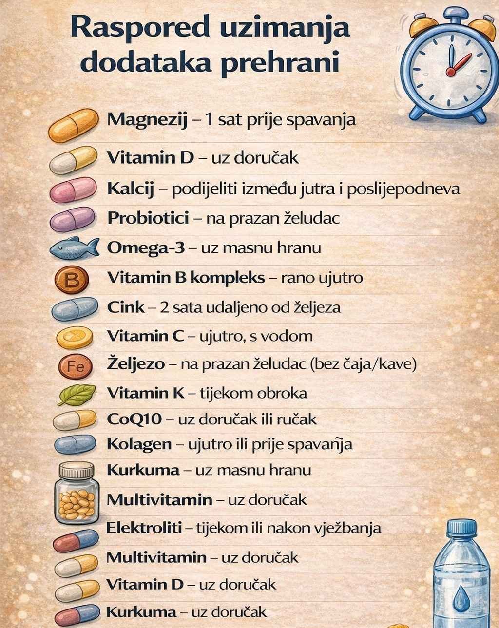 Važno je naglasiti da se učinkovitost dodataka prehrani ne temelji samo na njihovom sastavu, već i na tome kako i kada se uzimaju, što je jasno prikazano i u pratećoj infografici.