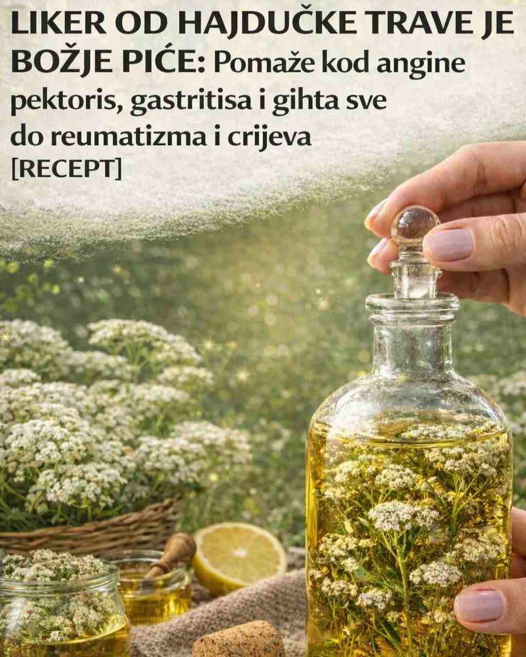 Dobar liker od hajdučke trave dobićete ako izrezanu svežu hajdučku travu (cvetove i meki deo stabljike sa listovima) potopite u rakiju i to u razmeri: 8 grančica sa cvetovima na pola litre rakije, zatim ostavite da stoji 7 dana na nekom svetlom, ne mnogo sunčanom mestu, najbolje na prozoru koji nije ceo dan pod suncem.
