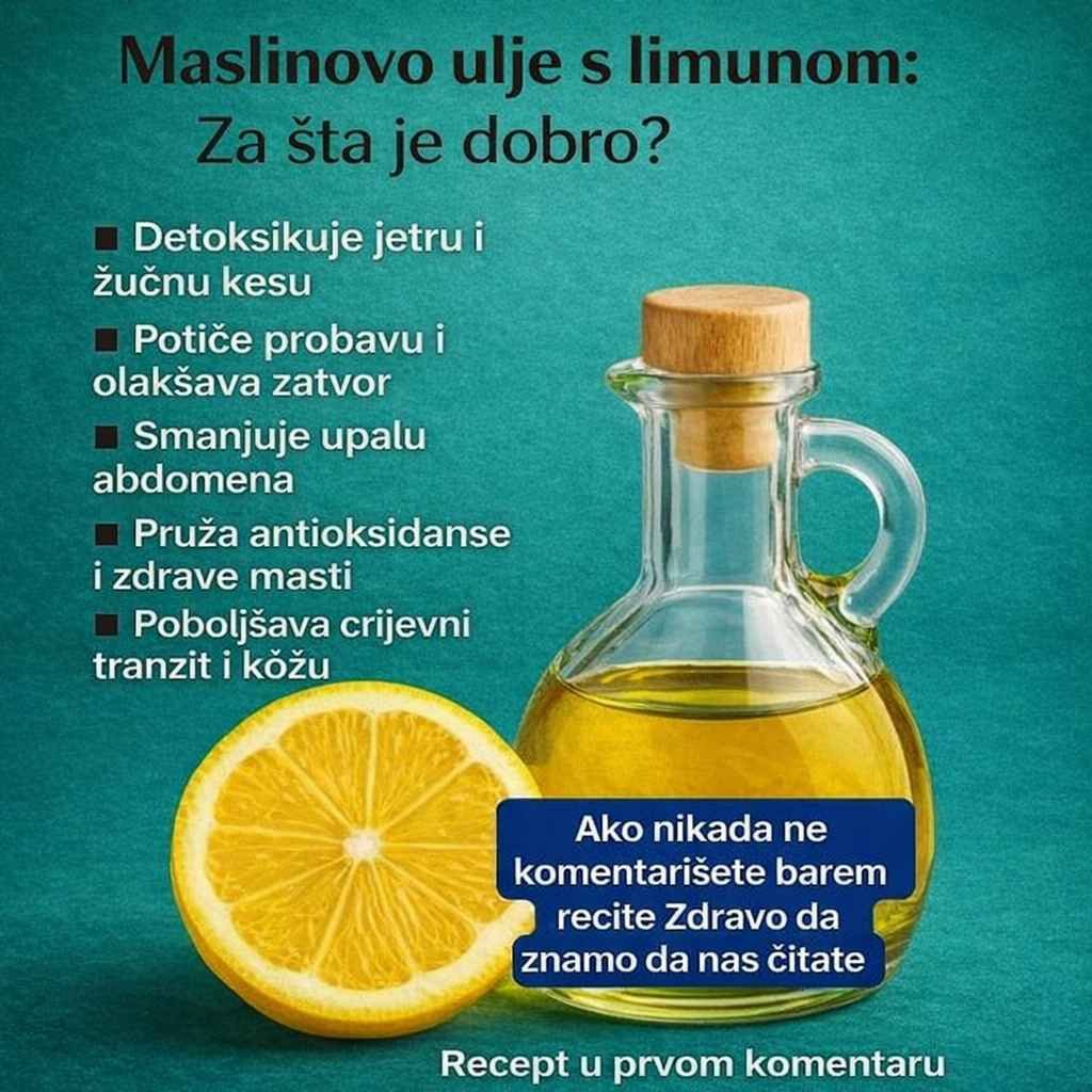 Maslinovo ulje podstiče proizvodnju žuči, dok limun pomaže u detoksikaciji organizma. Zajedno mogu pomoći jetri i žučnoj kesi da efikasnije uklanjaju toksine.
