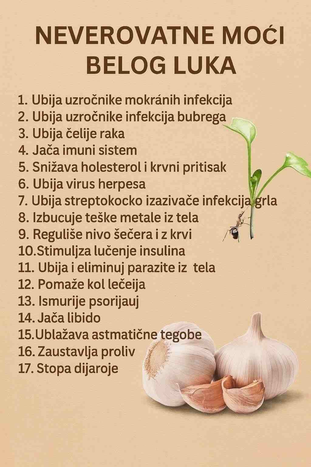 Beli luk je jednostavna, jeftina i izuzetno moćna biljka koju bi svako trebao imati u svojoj prehrani. Bilo da se koristi svjež, u čaju ili kao dodatak jelima, on predstavlja čudesan prirodni lijek za jačanje zdravlja i prevenciju mnogih bolesti.