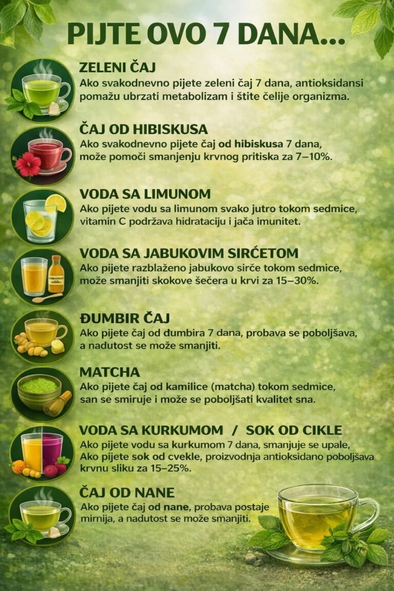 Health Zdravi napitci za 7 dana – prednosti i vodič 🌿 MilanApril 10, 20260 Svakodnevno pijenje prirodnih napitaka može imati snažan utjecaj na vaše cjelokupno zdravlje. Slika ističe nekoliko popularnih napitaka koji, kada se…