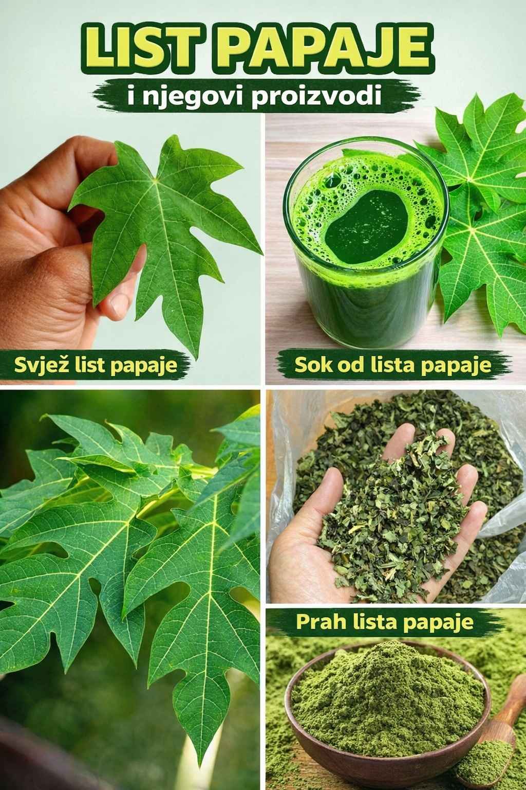 Listovi papaje, iako manje poznati od samog ploda, predstavljaju moćan prirodni dodatak zdravoj ishrani. Redovnom i pravilnom upotrebom mogu značajno doprinijeti općem zdravlju, energiji i otpornosti organizma.