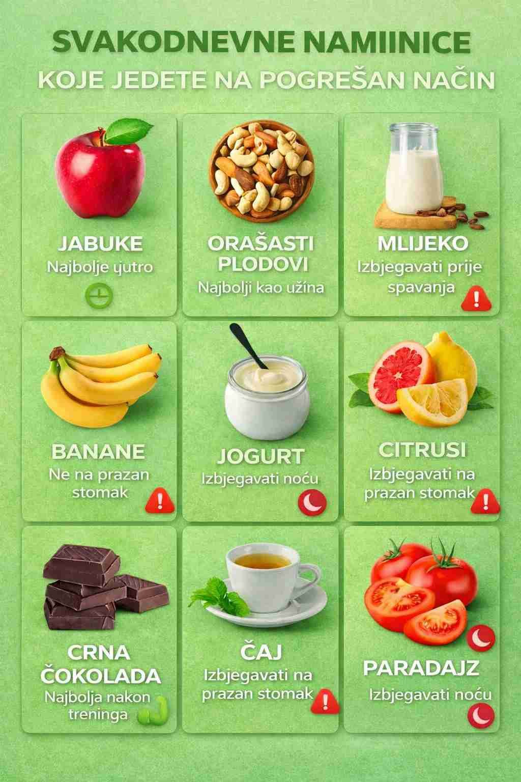 ✔ Neke zdrave namirnice mogu uzrokovati štetu ako se jedu u pogrešno vrijeme